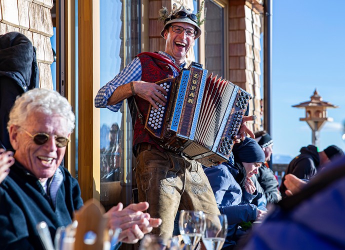 Am Vormittag erklingen an der Bergstation der Seiser Alm-Bahn die ersten Töne, zu Mittag wird in den Hütten der Seiser Alm gespielt. Abends locken Konzerte in den Dörfern Kastelruth, Seis am Schlern, Völs am Schlern und Tiers am Rosengarten– oft so nah, dass man sich wie bei einem privaten Wohnzimmerkonzert fühlt.